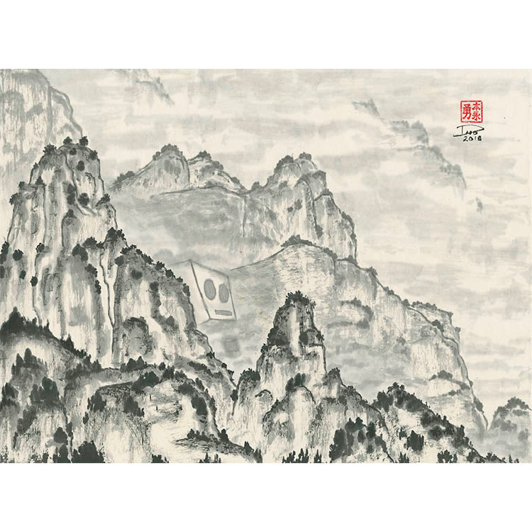 "I love the sumi-e ink style of a landscape with the random geometric shape of a robot plunked in the middle of it. Quirky and beautiful! Prompt shipping and well-packaged. Recommended!"