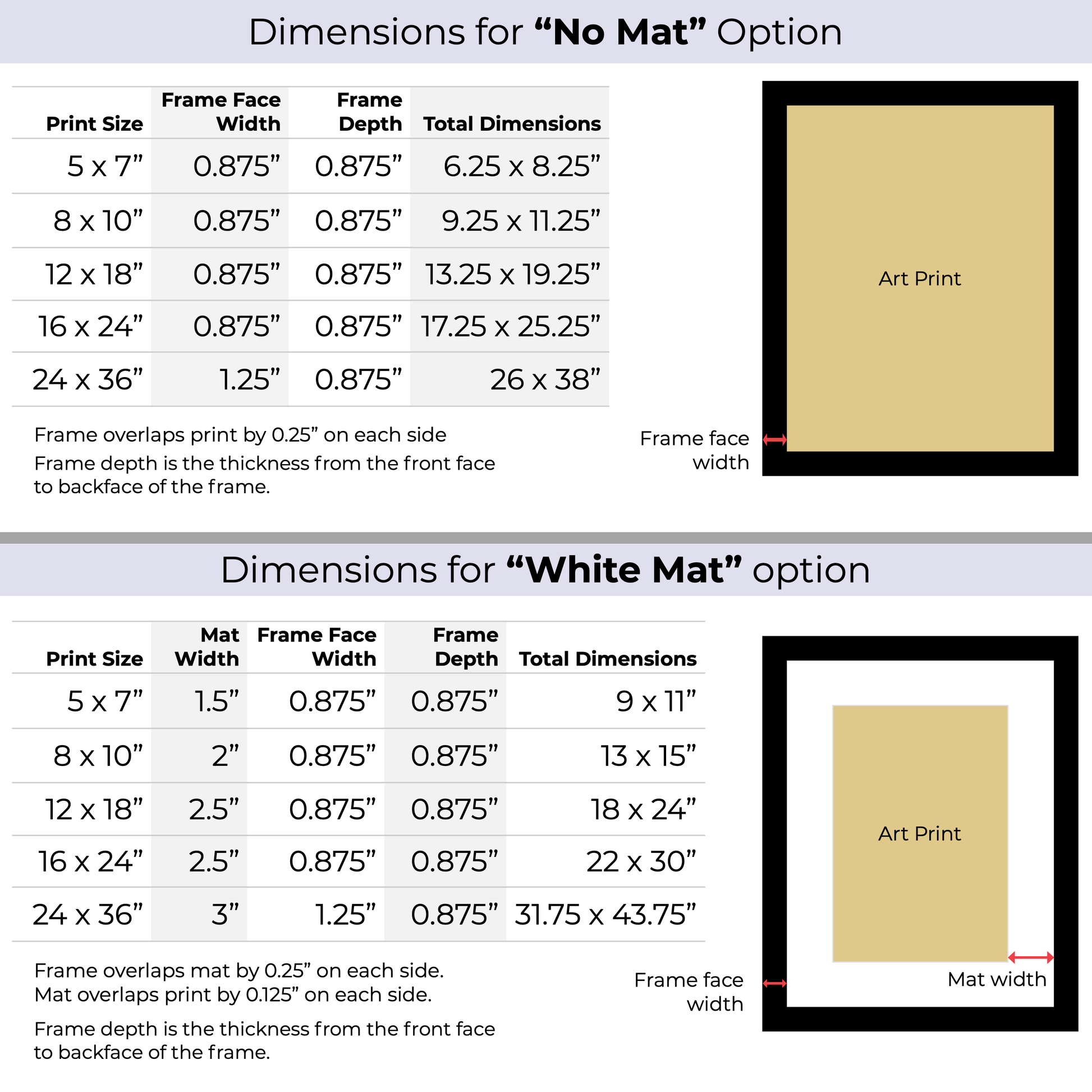 16 x 24" print and smaller – 0.875" face width x 0.875" depth