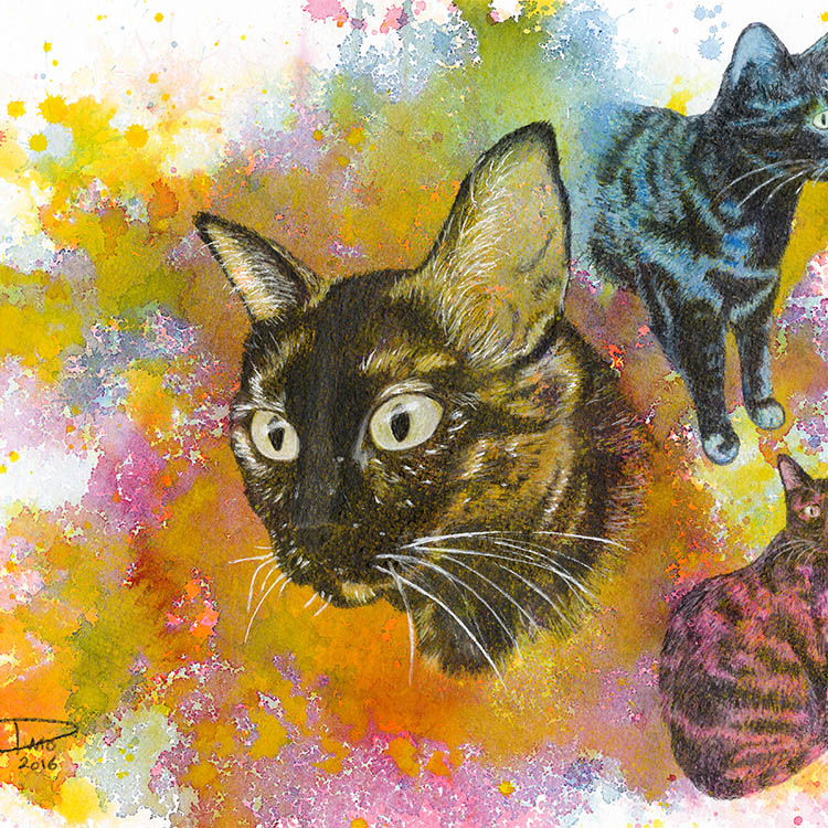 Reproduction of an original art piece. Background was created with watercolor and the rest done with a watercolor under-layer and colored pencils over that for details.
